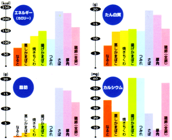 美味しさの中に栄養をギュッと凝縮した「なると巻」・「かまぼこ」。まず目をひくのがたんぱく質の豊富さです。その栄養価は鶏卵にひってきし、また日本人に不足しがちなカルシウムもたっぷり含んでいます。高い栄養価を誇りながら、低カロリー・低脂肪というバランスの良さが、欧米で話題になっているのもうなずけますね。